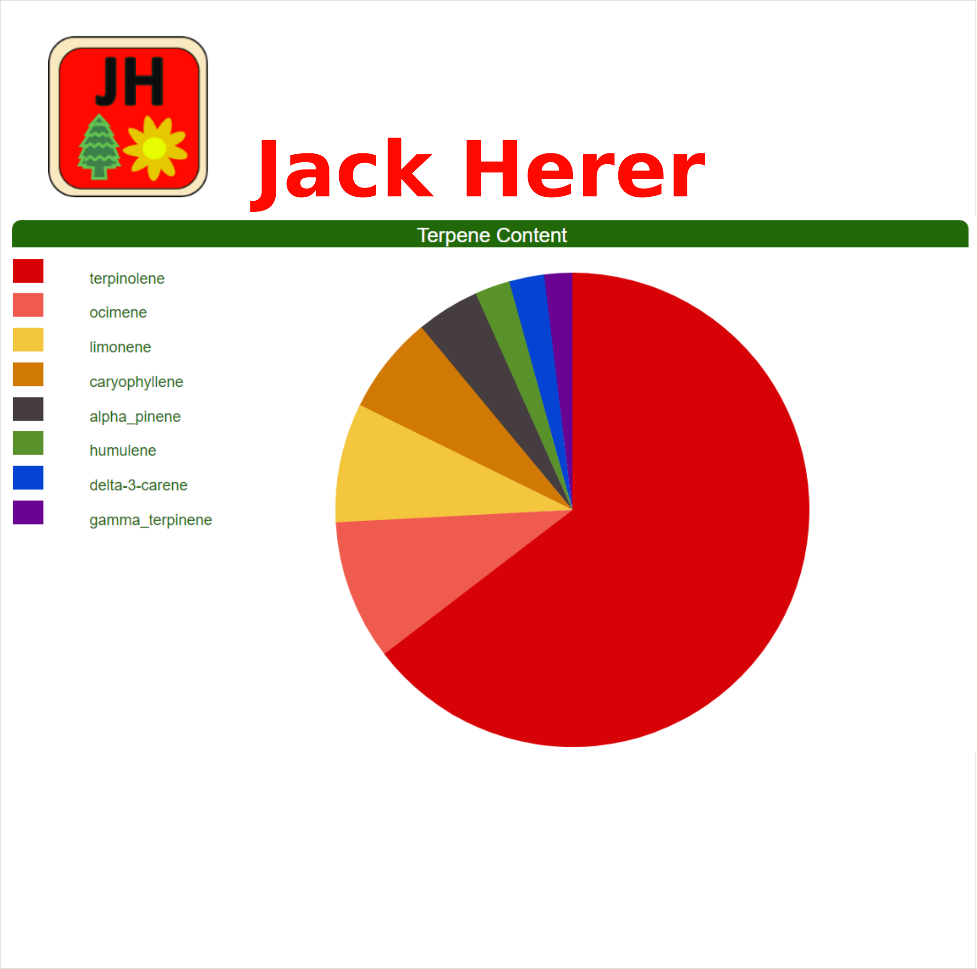 A terpinolene dominant profile with a strong pine flavor and complex floral notes.